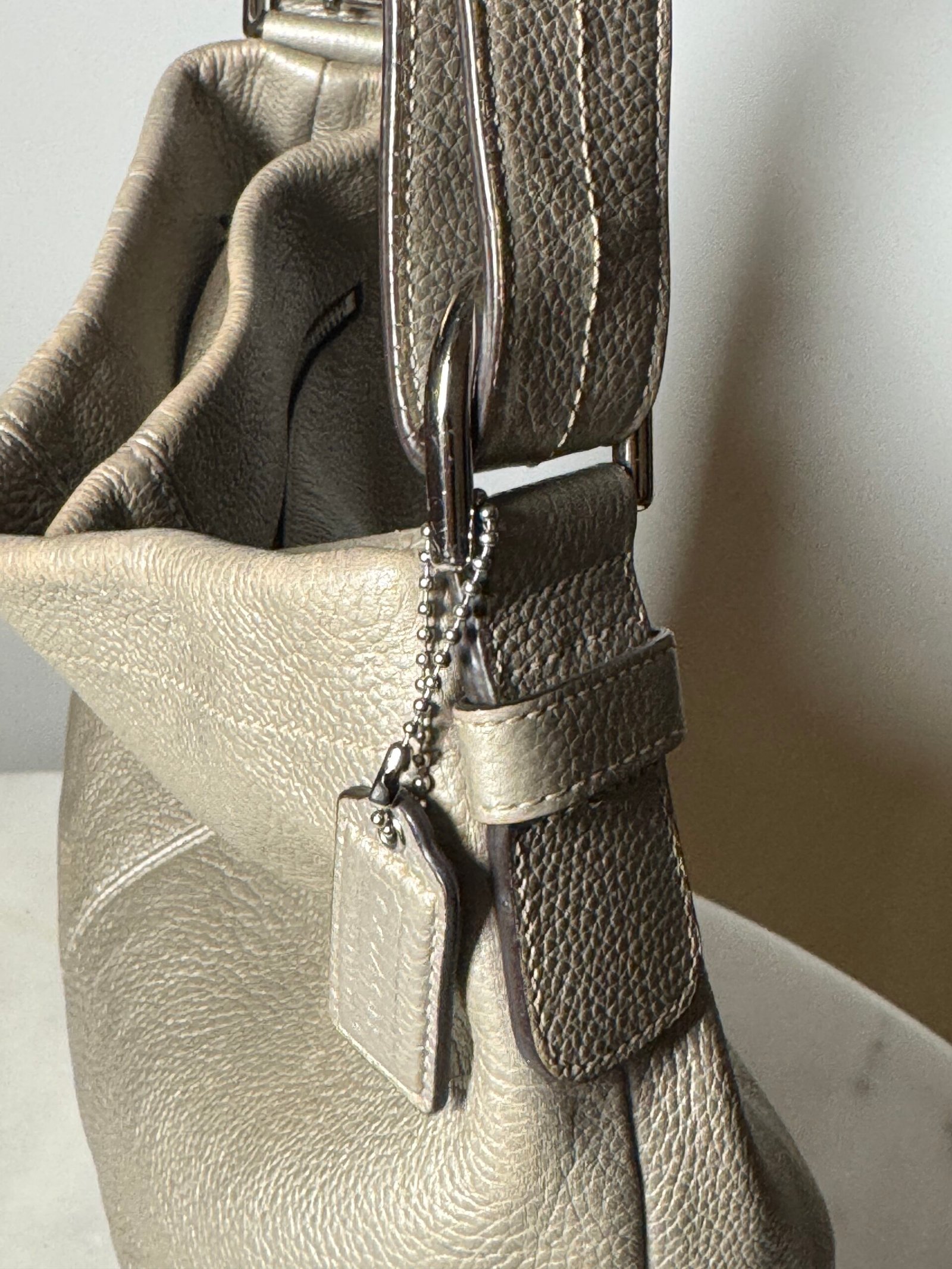 Coach Style F15064 Pebbled Leather Hobo in Silver. Please review all photos carefully before purchasing. Condition and item details should be confirmed from the listing images. All sales are final.