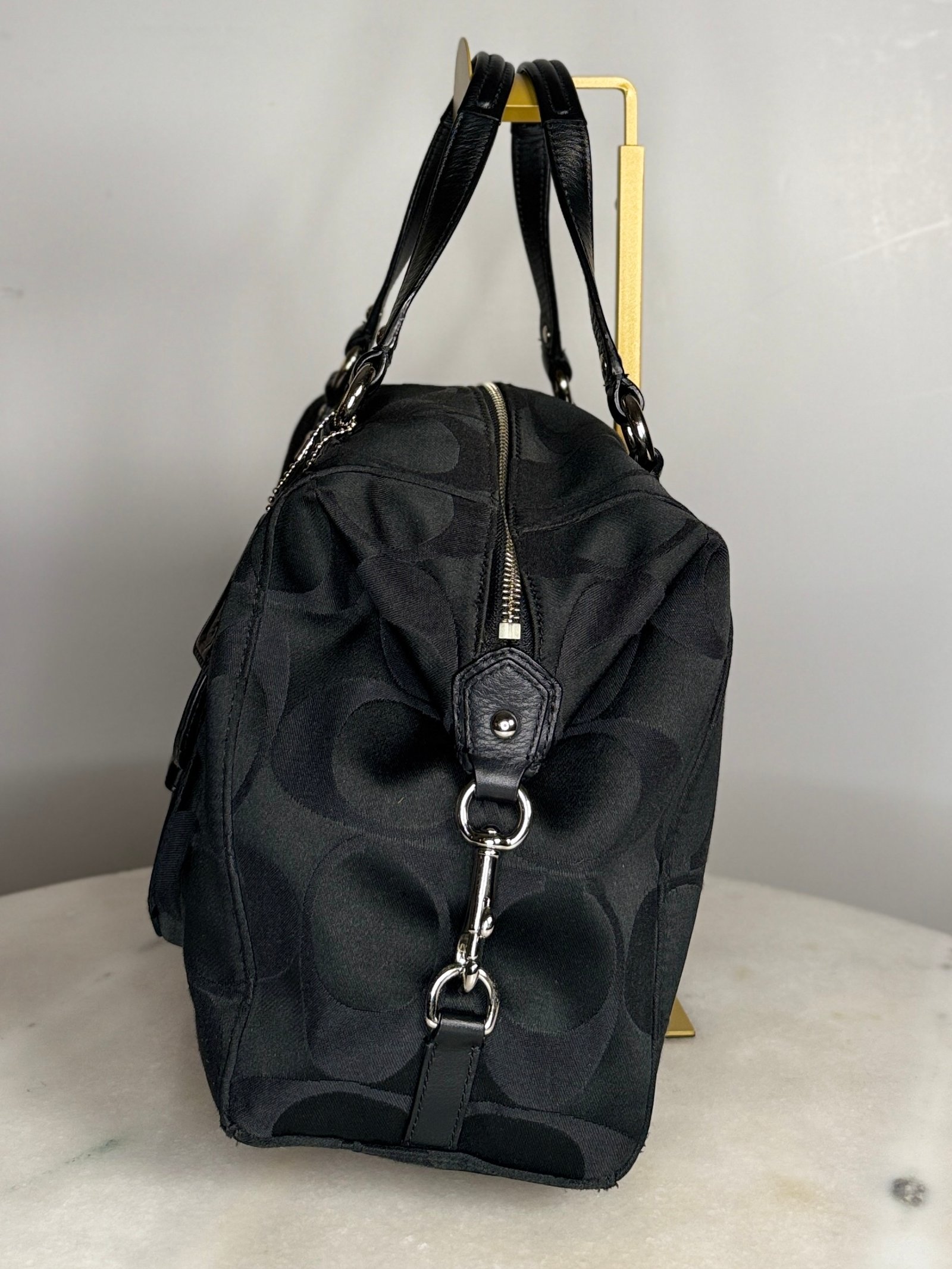 Coach Style F26243 Campbell Izzy in Black Signature Satin / Silver. Please review all photos carefully before purchasing. Condition and item details should be confirmed from the listing images. All sales are final.
